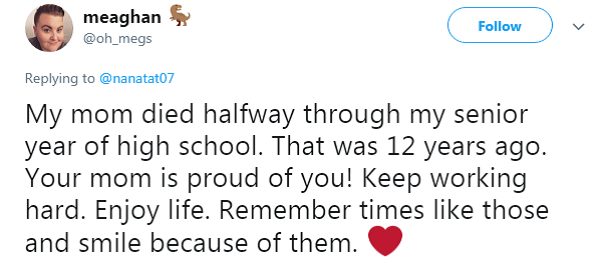 They offered words of encouragement and let her know that her mother was now in a better place.