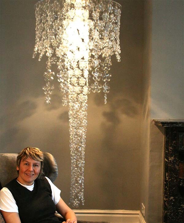 20.) Cut off the bottoms of plastic bottles… and make this awesome chandelier.