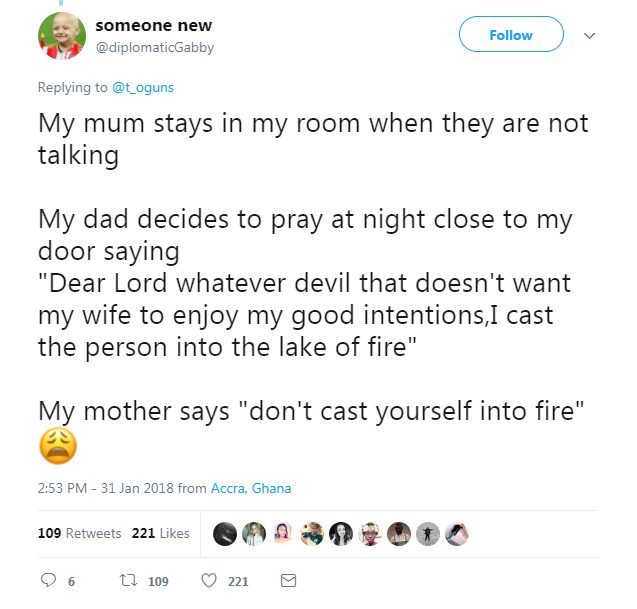 Twitter user @t_oguns recently asked people which of their parents is more dramatic, sparking a collective recount of the lengths some go to make a point to their kids or teach them a lesson. Check out some of the funniest and most ridiculous stories below.