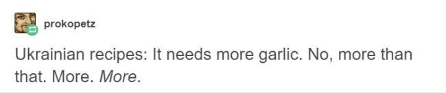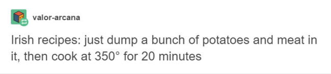 Often times, traditional recipes reflect the funny, good-natured stereotypes found in areas around the world, revealing each culture’s collective neuroses about what makes food good. Tumblr users have recently amassed a funny collection of mock dish specifications for a number of countries, and the descriptions couldn’t be any more accurate.