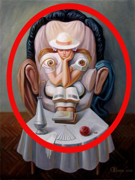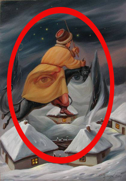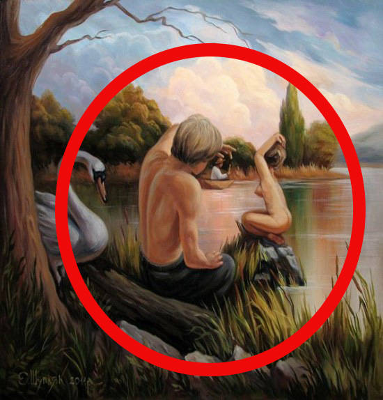 Even if you don’t see what’s hidden here at first, just keep looking. These paintings contain something else that adds a whole new dimension to the works. You may think you’re just seeing a normal scene, but then…