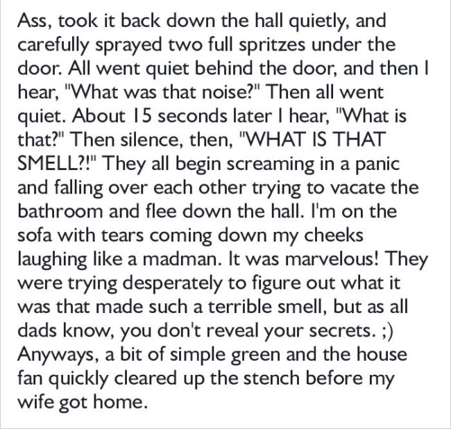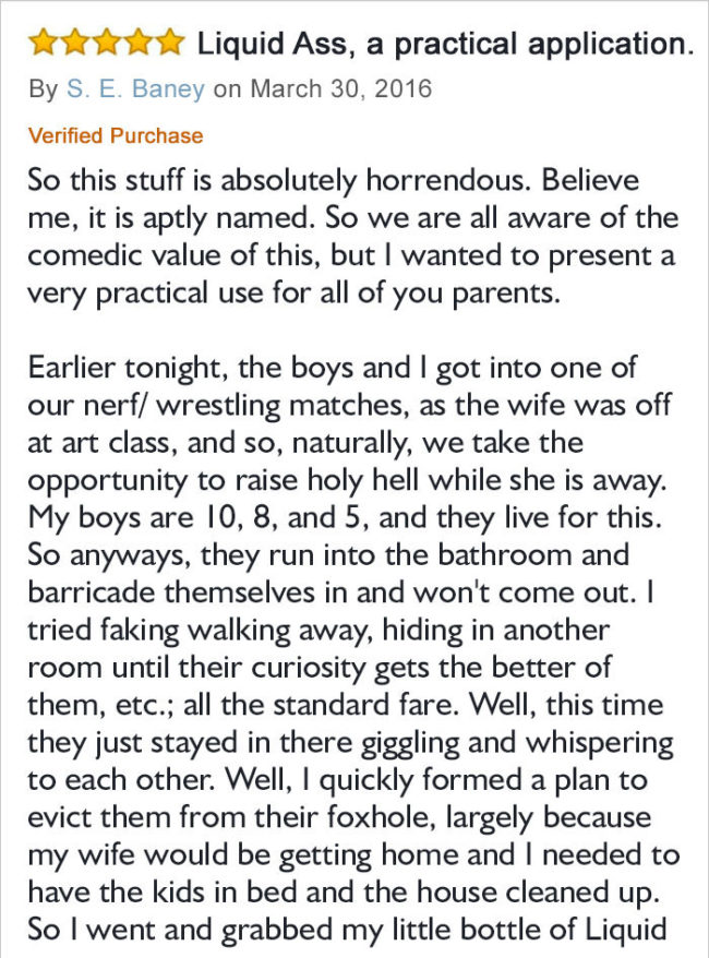 This is “Liquid Ass.” According to the product description, it’s a “highly concentrated, super-horrible smelling fart spray” that, frankly, “smells like ASS…only worse.” It’s marketed as a fart prank, but it does so much more than that.