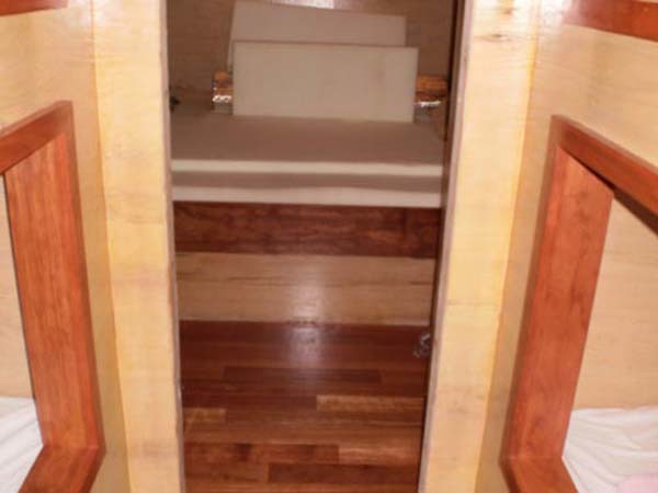 The master bedroom, located in the back of the bus.