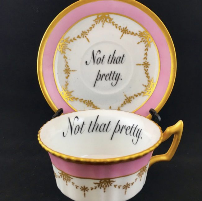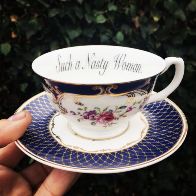 Aimed at “the lady who speaks her mind,” Miss Havisham’s insulting teacups are the perfect way to let others know your inner thoughts without ever having to speak a word. Instead of spilling your guts, you’ll be spilling the tea. With scalding phrases such as ” I could poison you,” and “I hope you choke,” tea time just got a whole lot pettier.