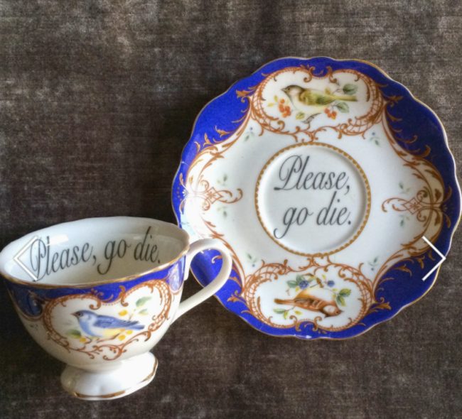 Have you ever wished that you could oh-so-subtly let an unwelcome visitor know how you really feel about them? Well, these brutally honest tea sets should make dinner with your mother-in-law so much easier.