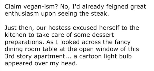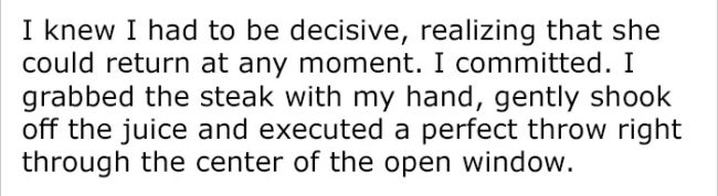 Here’s the whole fateful story involving a rare steak, a closed window, and a lot of embarrassment.