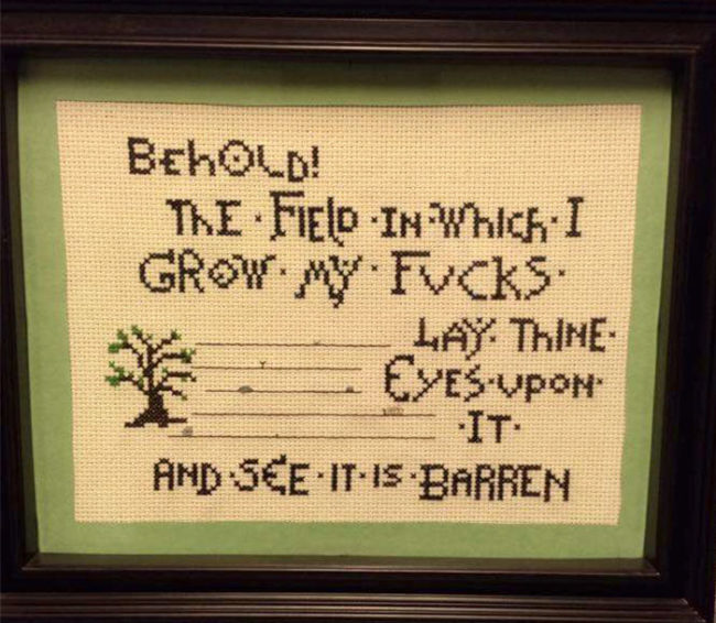 But not every cross stitcher is so sweet and innocent. While they may seem innocuous at first, these hilarious and sometimes savage cross stitch designs certainly aren’t for the faint of heart. (Warning: strong language ahead.)
