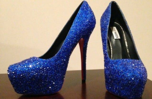 All it took was a cheap pair of Steve Madden heels, some really strong glue, blue and red paint, blue rhinestones and a great deal of imagination to make the girl’s prom dreams come true. Just try and tell the difference between the two pairs of shoes….spoiler alert: you are not going to be able to!
