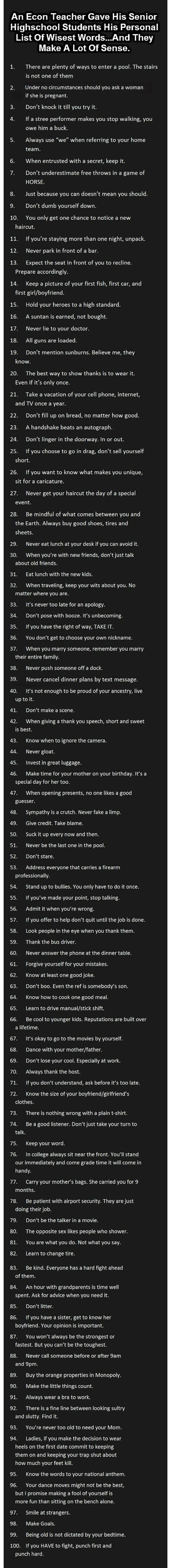 Teachers can be some of the most influential people in our lives. Most people can even point to one in particular during their childhood that made a special impact. Whether helping them through an emotional period, or just inspiring you to love a certain topic in school, these are the people that impact our lives the most. They’re the ones we WANT to listen to. Something tells me that if I had this man as a teacher, he would have been an inspiration… day in and day out. He gave his students his personal words of wisdom. (They did not disappoint.)