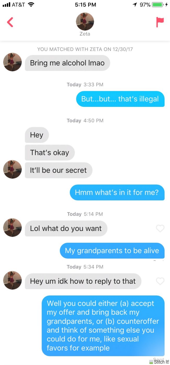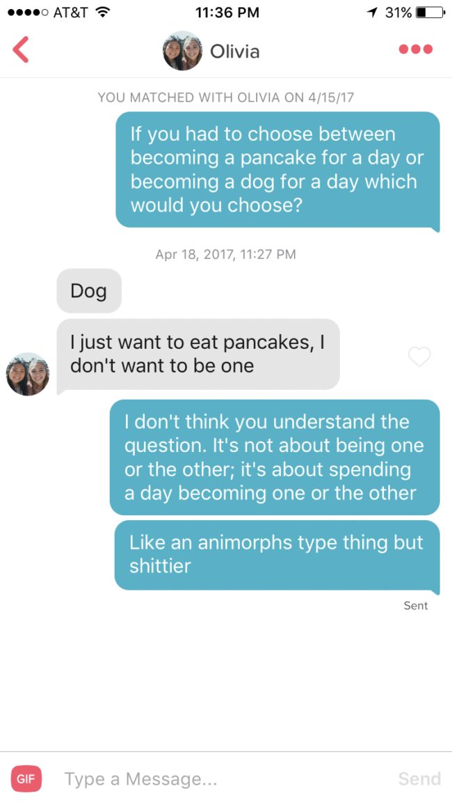 Tinder is the app you want to use if you’re looking to socialize, find dates, hook up with someone, or, in this guy’s case, troll the living hell out of every woman you’re matched with.